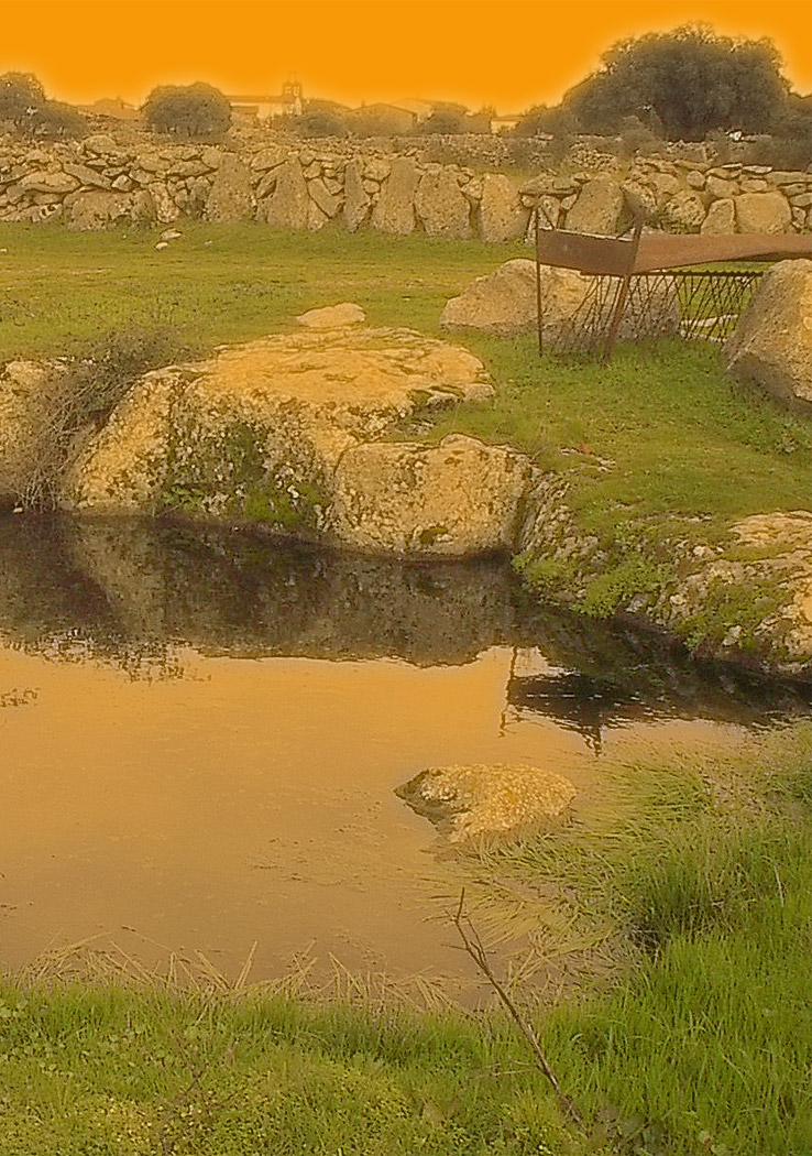 Charca del Sendero (colores manipulados en verde y anaranjado)