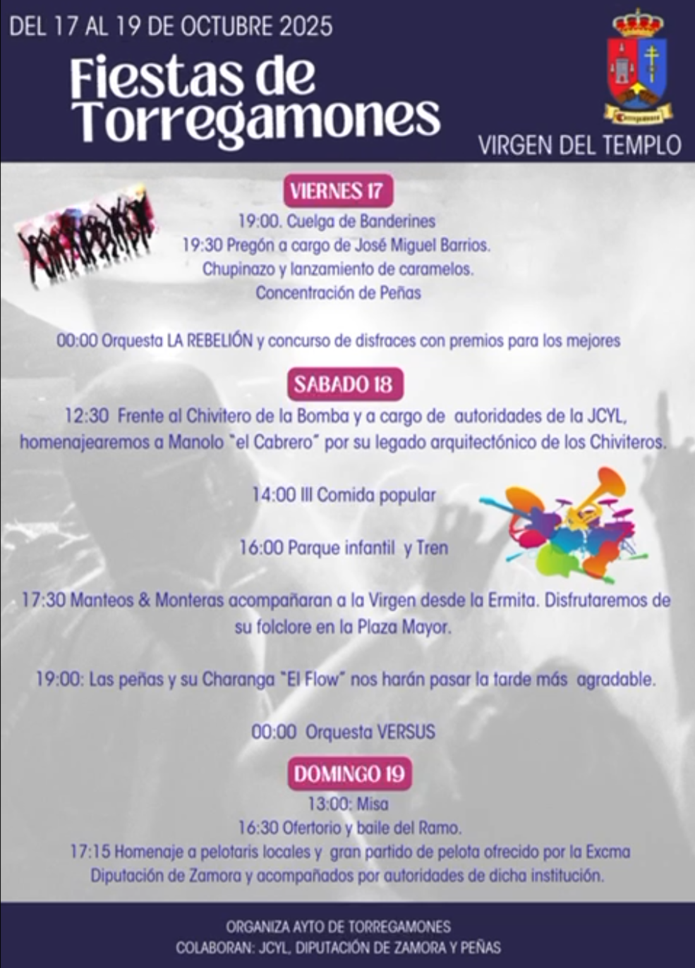 Programa de Fiestas de Torregamones Virgen del Templo 2025. Del 17 al 19 de octubre.